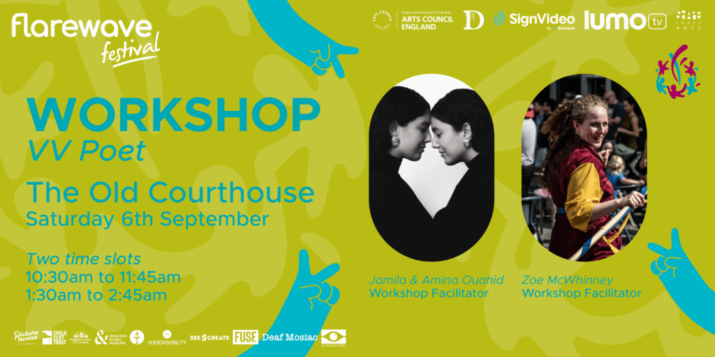 Learn the expressive art of Visual Vernacular with expert Deaf poets in a playful, hands-on workshop – full of storytelling and creativity.